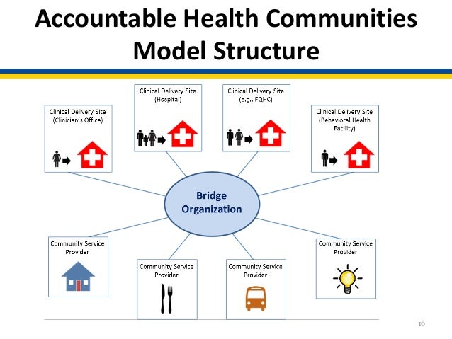 1252017 The Accountable Health Communities Model. 7142020 The BHT region is led by a nonprofit organization of the same name BHT with a vision to create an integrated community health system accountable to improving health through delivering culturally competent whole person care to all community members 16 BHT acts as a convener of health system actors across the diverse region of Eastern Washington which. The Accountable Health Communities Model addresses a critical gap between clinical care and community services in the current health care delivery system by testing whether systematically identifying and addressing the health-related social needs of Medicare and Medicaid beneficiaries through screening referral and community navigation services will impact health care costs.