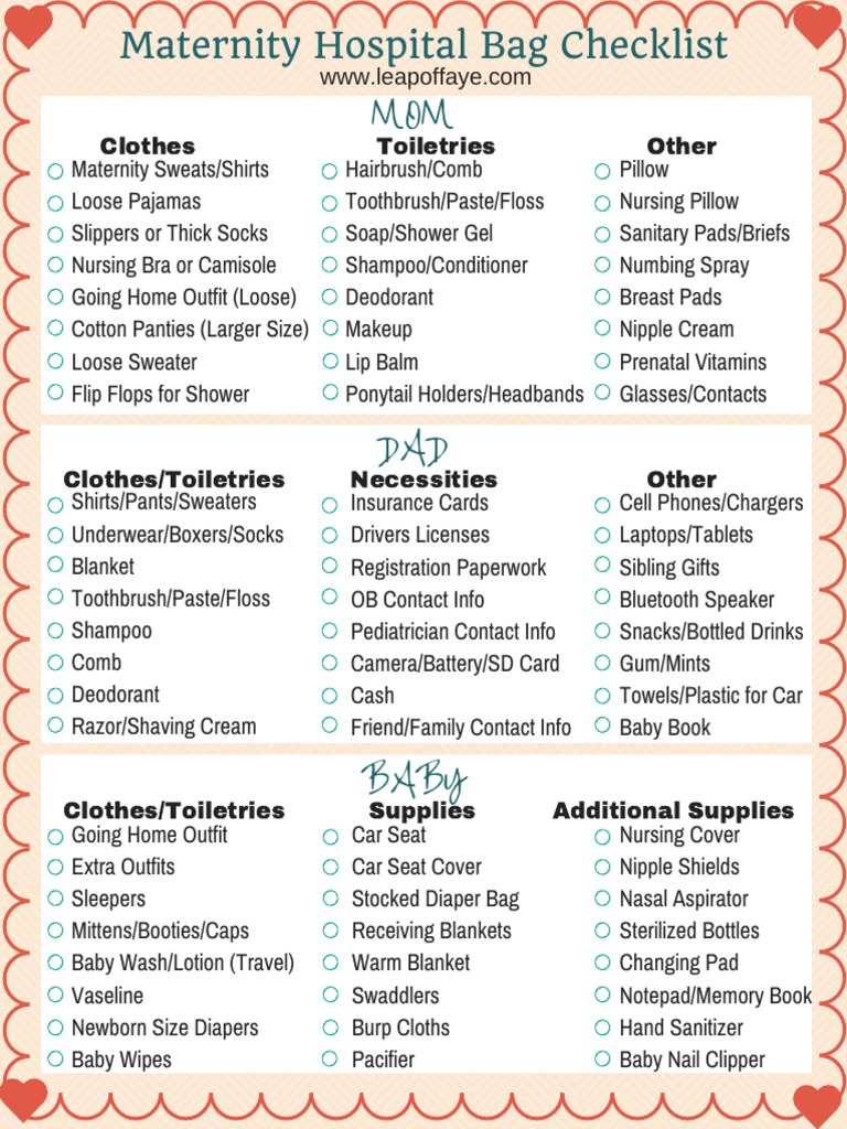 Maternity Hospital Bag Checklist Pdf