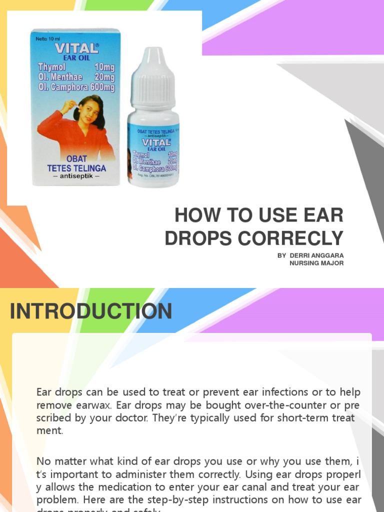 Major ear drops. Keep the head tilted for about two to five minutes so the drops can spread into. 12192020 Adults and children over 12 years of age. One of the major causes of.