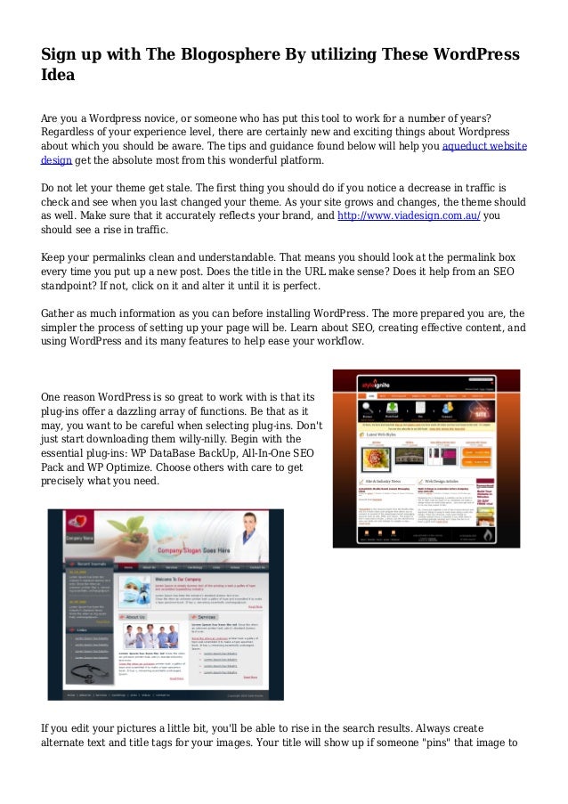 Sign Up With The Blogosphere By Utilizing These Wordpress Idea